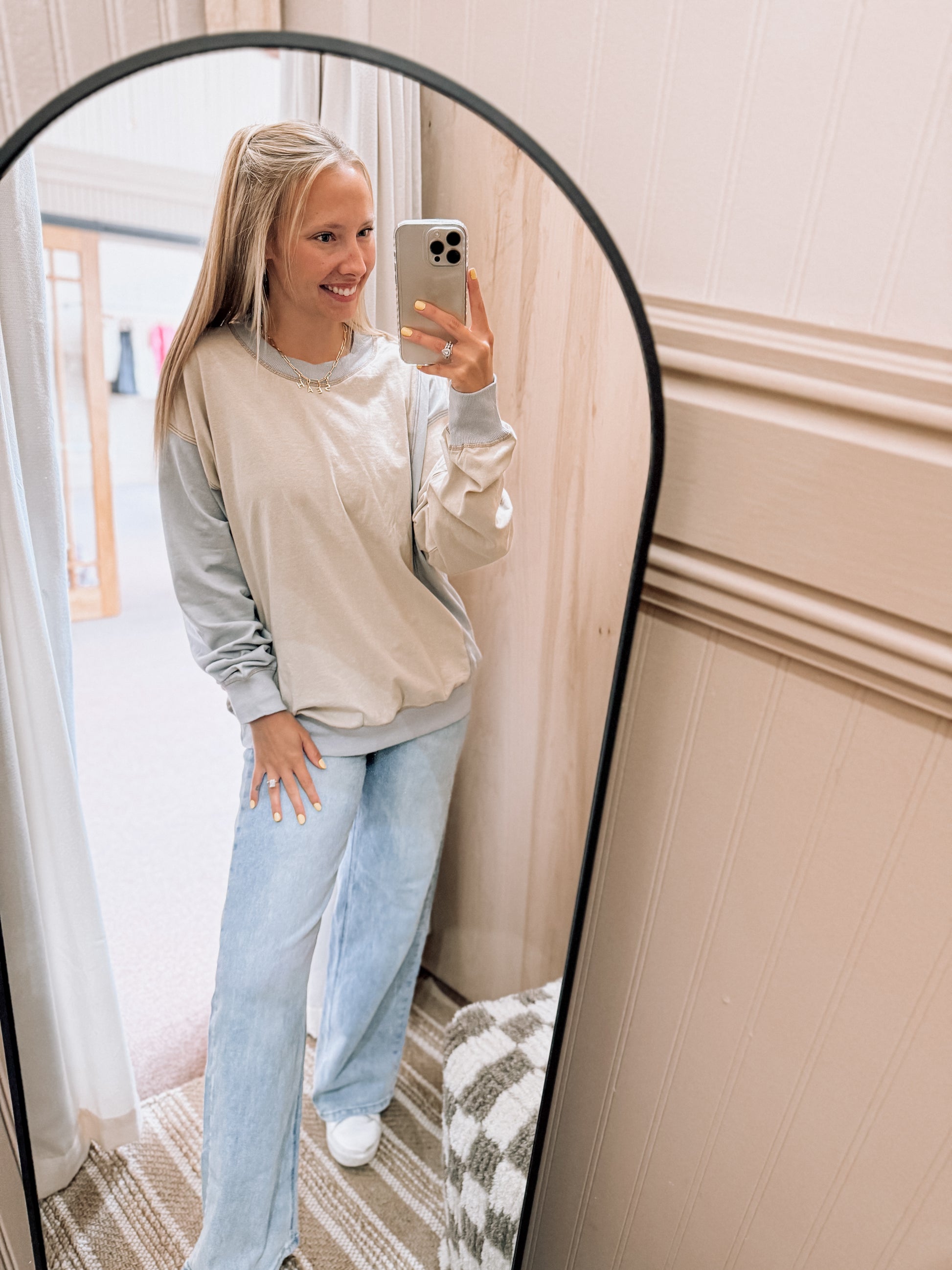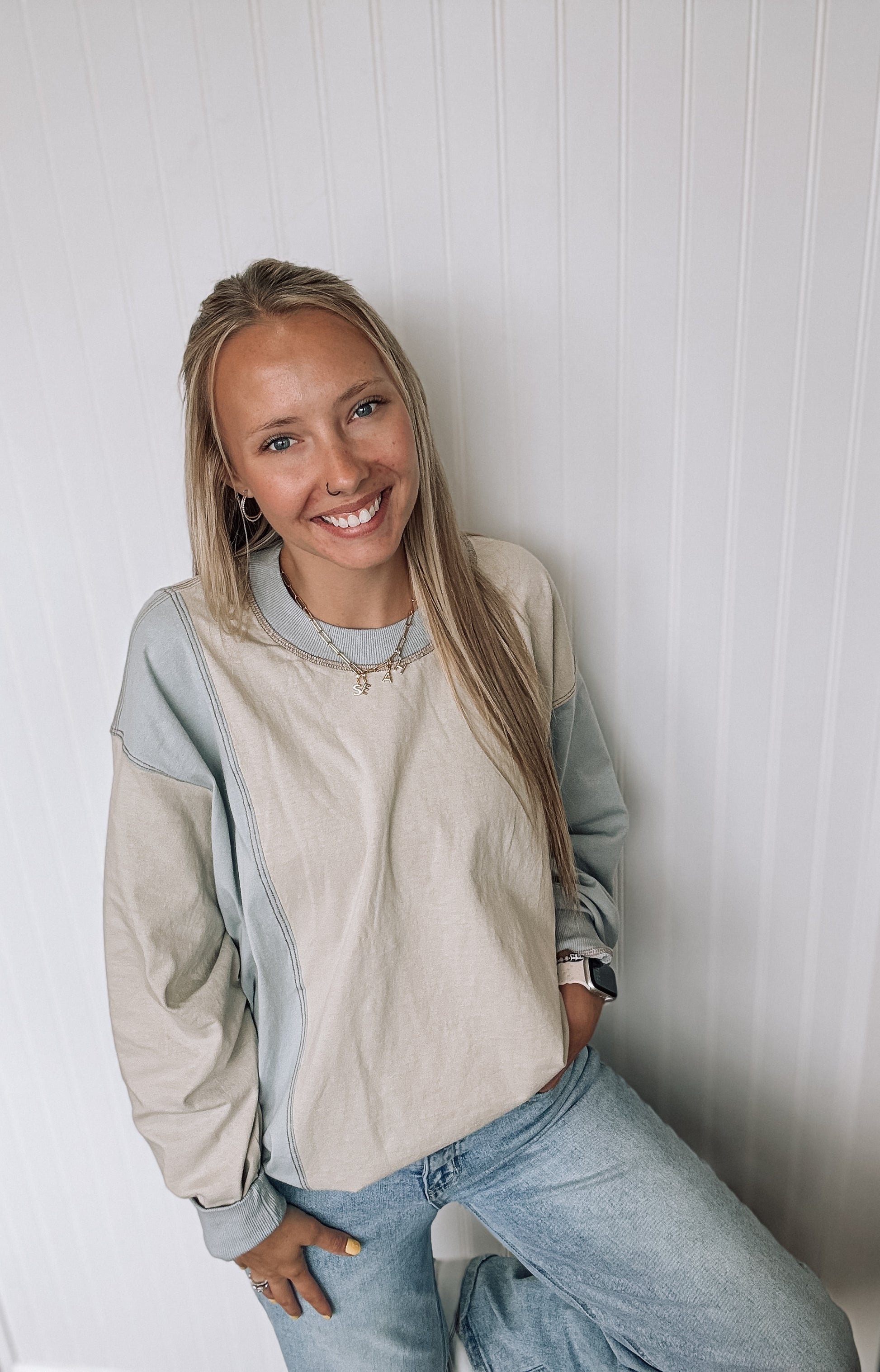 Lightweight, laid-back, and kissed by the coast. The Coastal Breeze Pullover brings that effortless, sun-washed feel with a neutral two-tone palette and a relaxed fit. Whether you’re layering it on breezy beach nights or pairing it with denim for a chill day out, it’s the kind of piece that feels like a breath of fresh air.