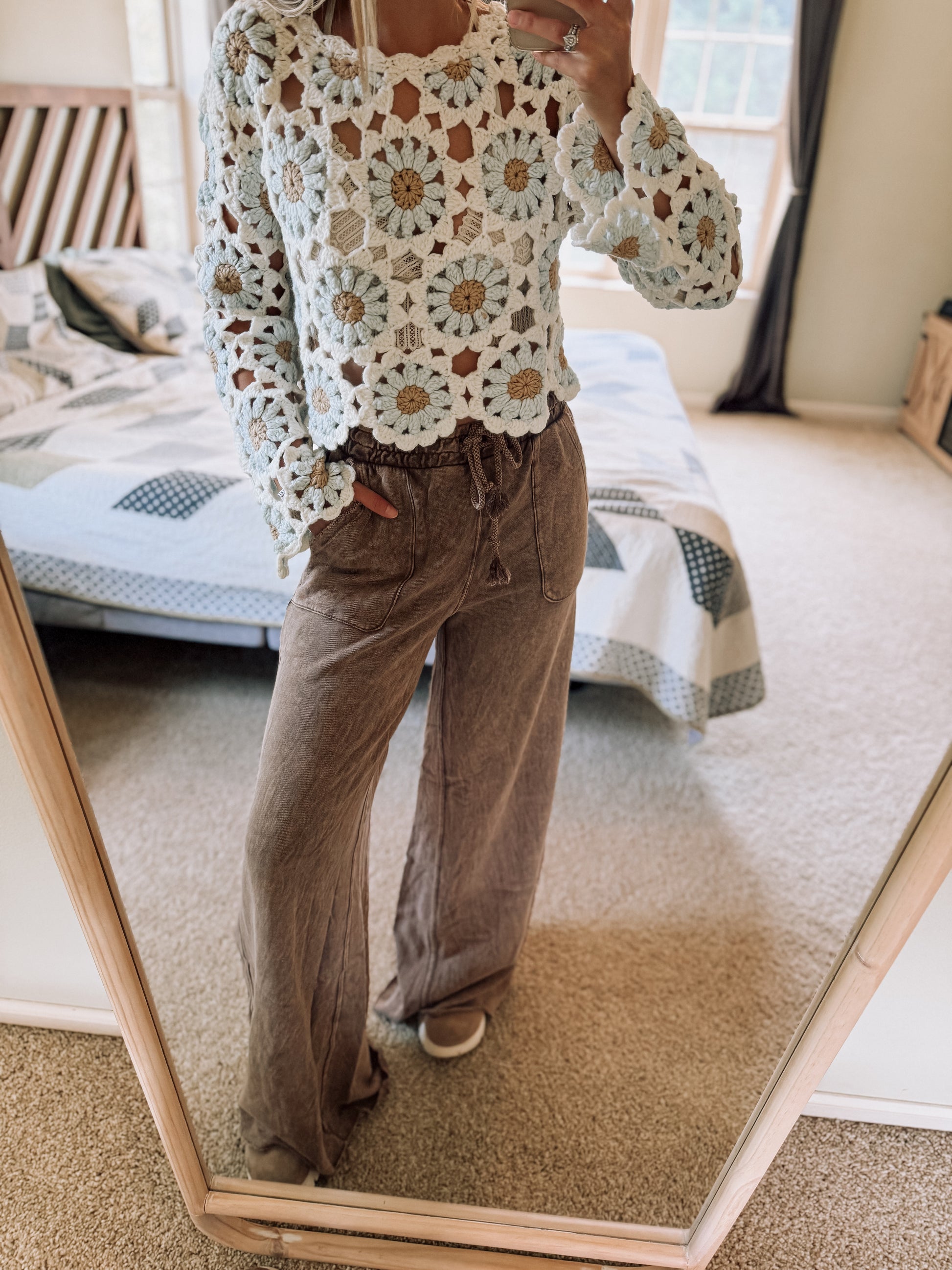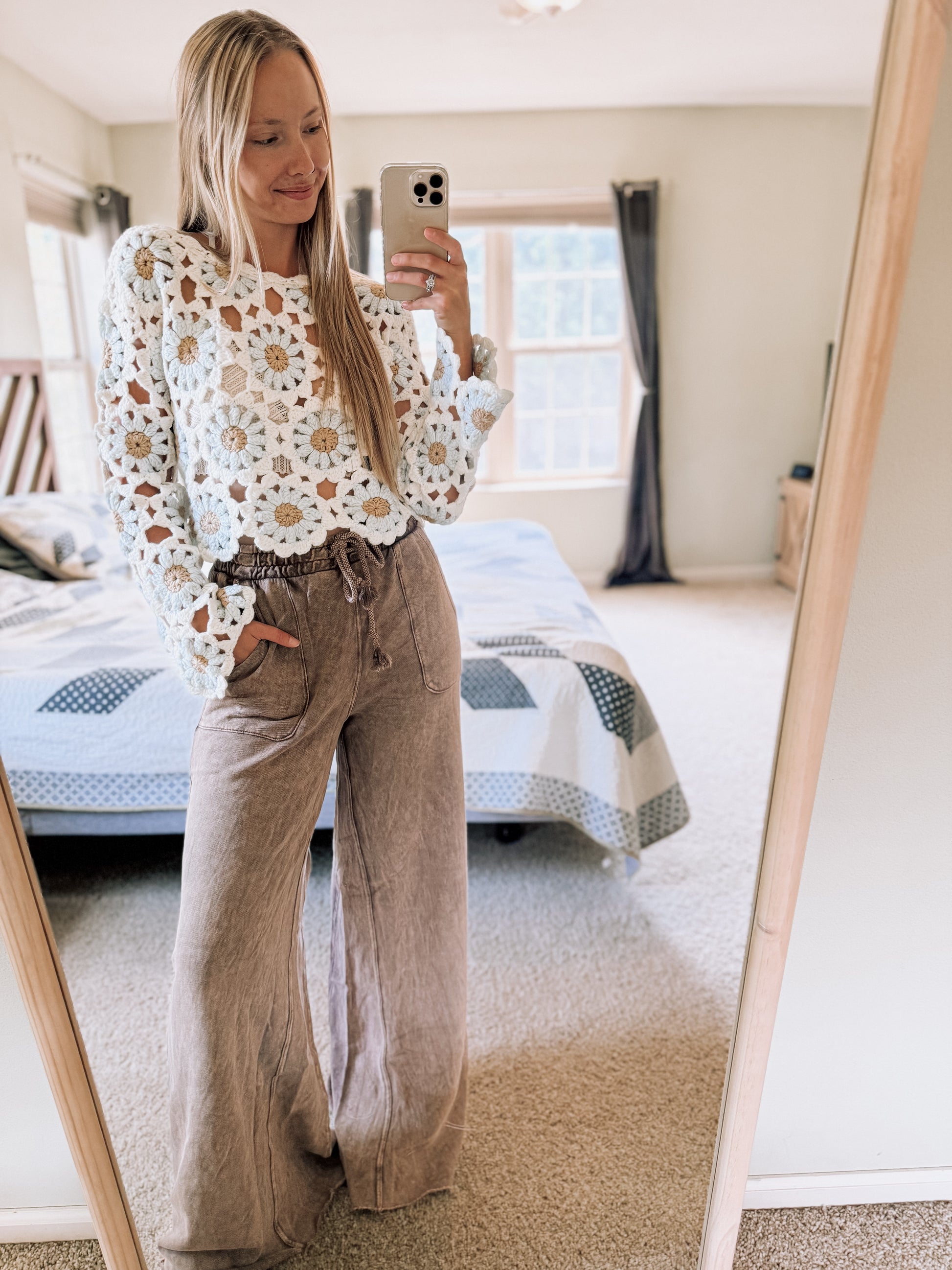 Rooted in comfort, made for movement. The Earthbound Wide Leg Bottoms are the ultimate go-to for easy, effortless dressing. Designed in a lightweight washed fabric with a naturally textured feel, they feature a relaxed wide-leg silhouette, stretchy high-rise waistband, and a rope-style drawstring for that laid-back, lived-in look. Side pockets add a practical touch, while the earthy taupe-brown tone makes pairing simple.