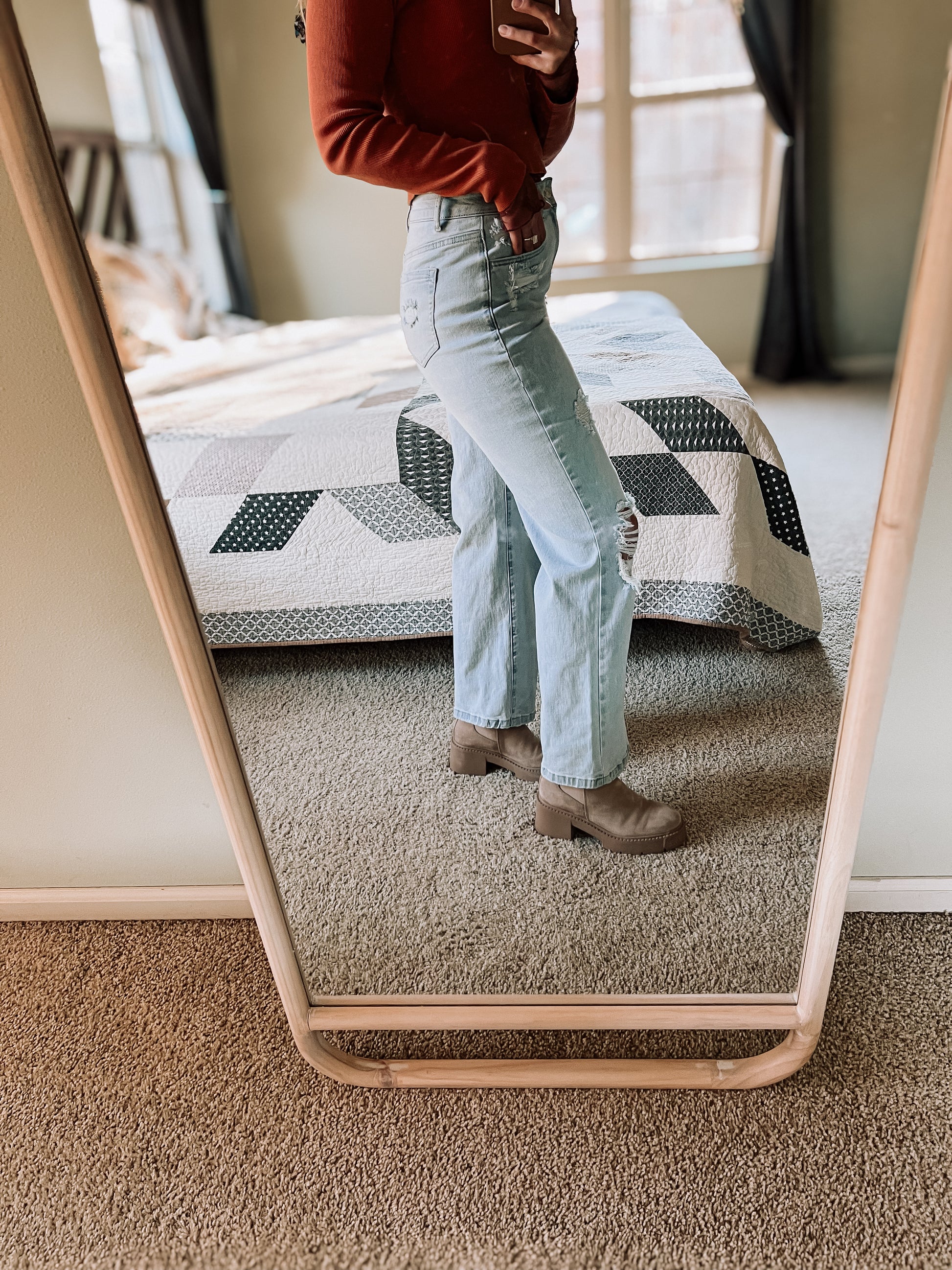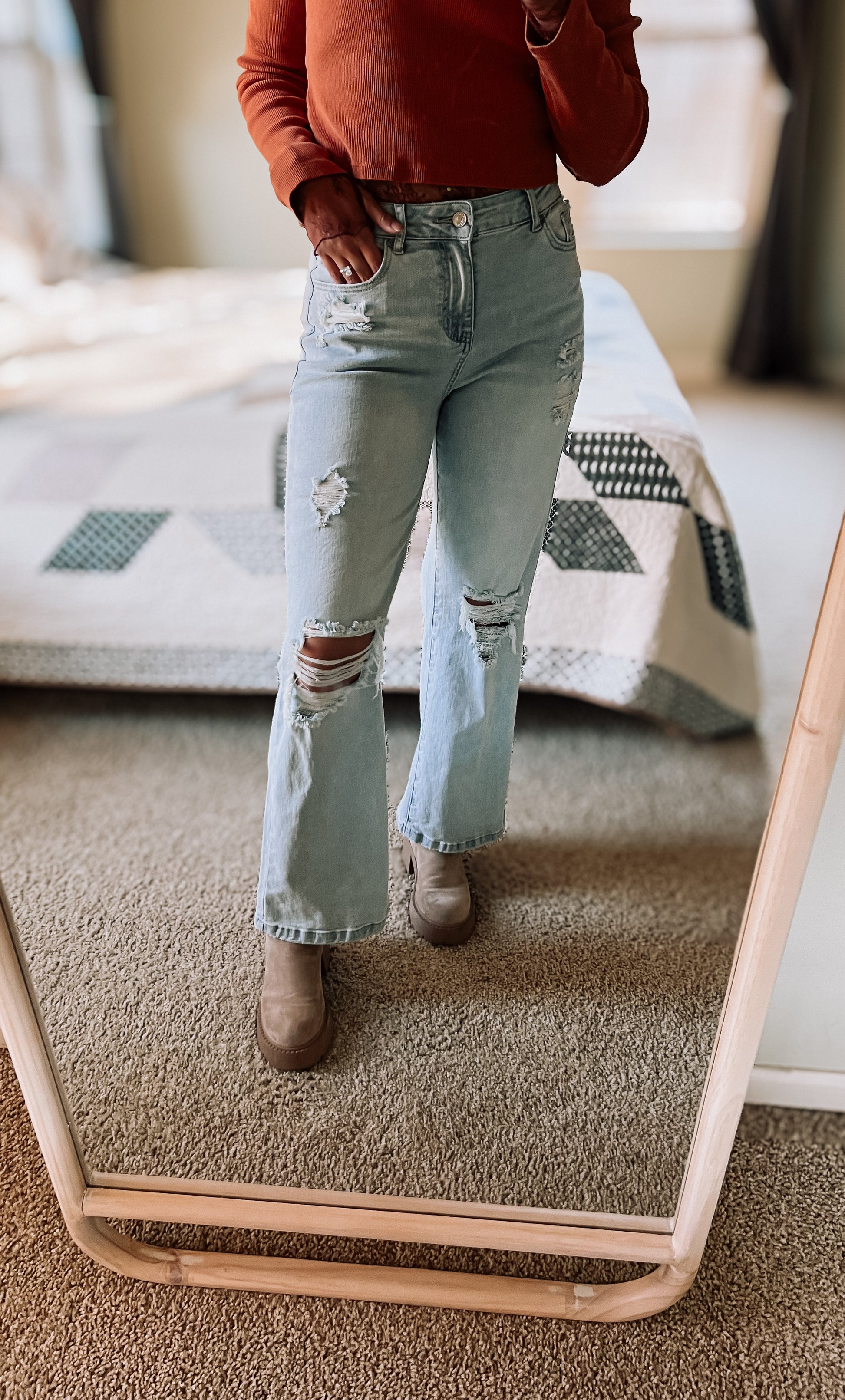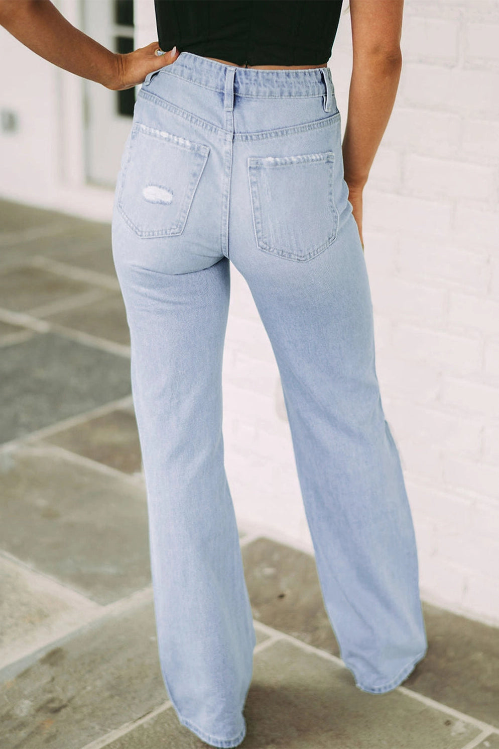 Take your denim game to the next level with these vintage distressed flare jeans, the perfect fusion of retro and chic. Featuring a flattering high waist design that shows off your curves, these jeans offer all-day comfort with their relaxed fit. The light wash and distressed accents bring a touch of edgy flair to any outfit, making them a great choice for casual outings or fun nights with friends. Embrace the relaxed, wide-leg cut of these jeans, giving you the option to rock them with both sneakers for a laid-back feel or heels for a more refined look.